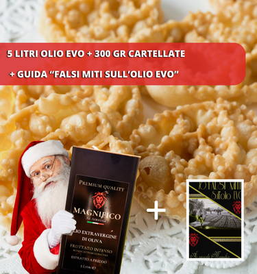 Il nostro OLIO EVO a casa tua per il Natale 2024!!Con questo ordine Riceverai: TANICA DI OLIO EVO ( 5 lt) + 300 gr di CARTELLATE PUGLIESI realizzate nel laboratorio artigianale del nostro paese.+ la GUIDA AI FALSI MITI SULL'OLIO EVO. Un pratico manuale per porre fine a convinzioni sbagliate riguardo l'olio evo